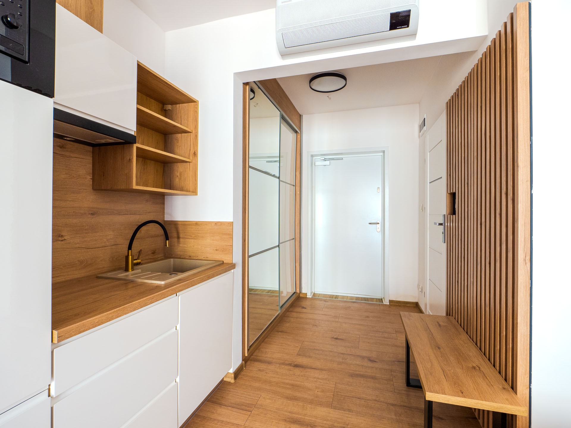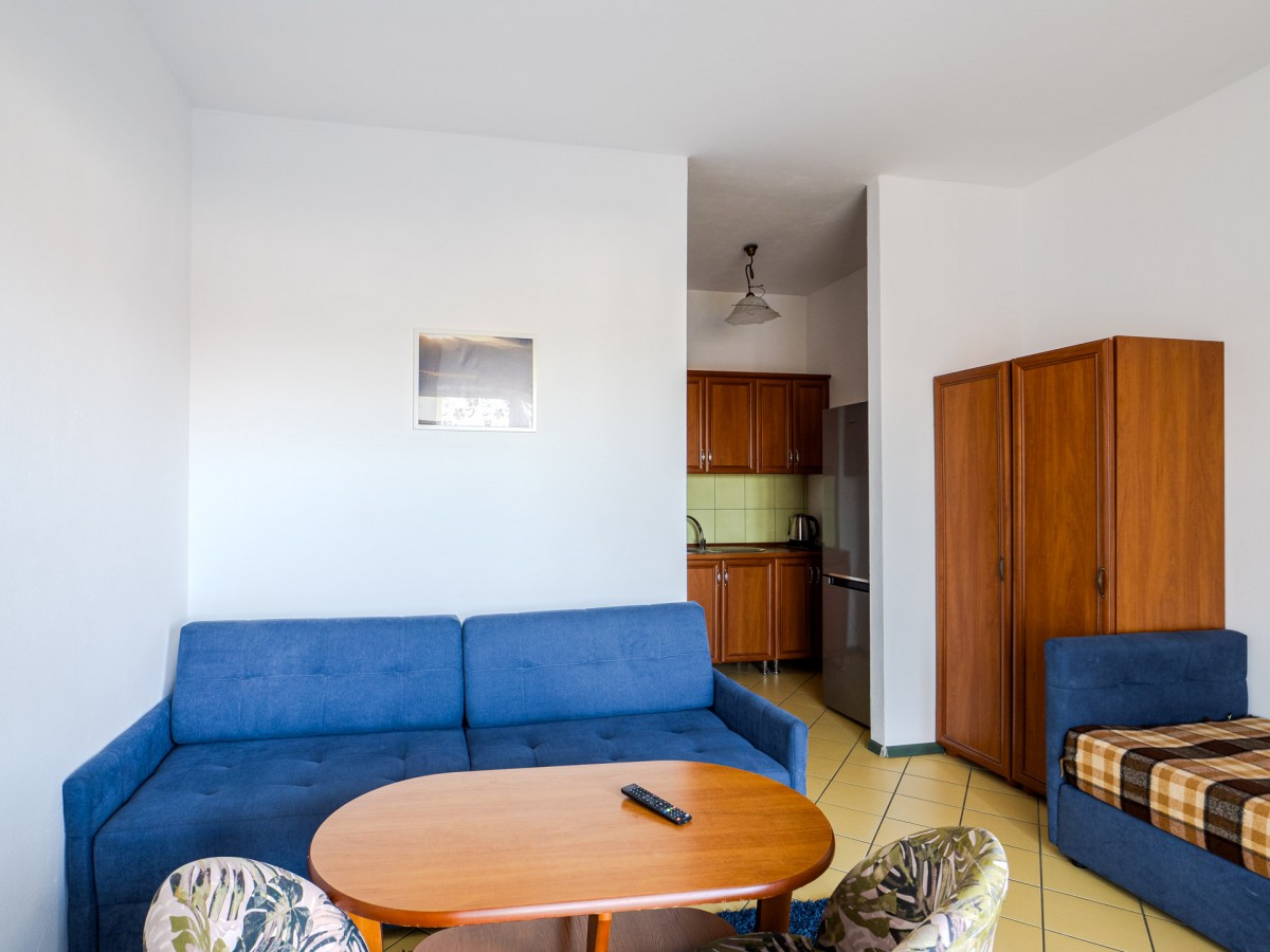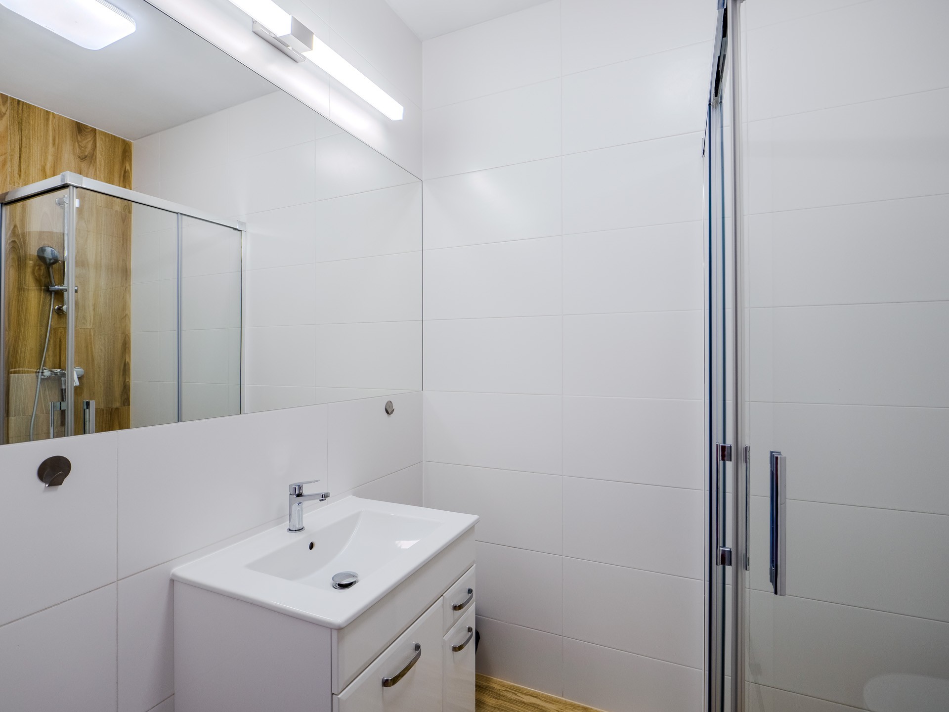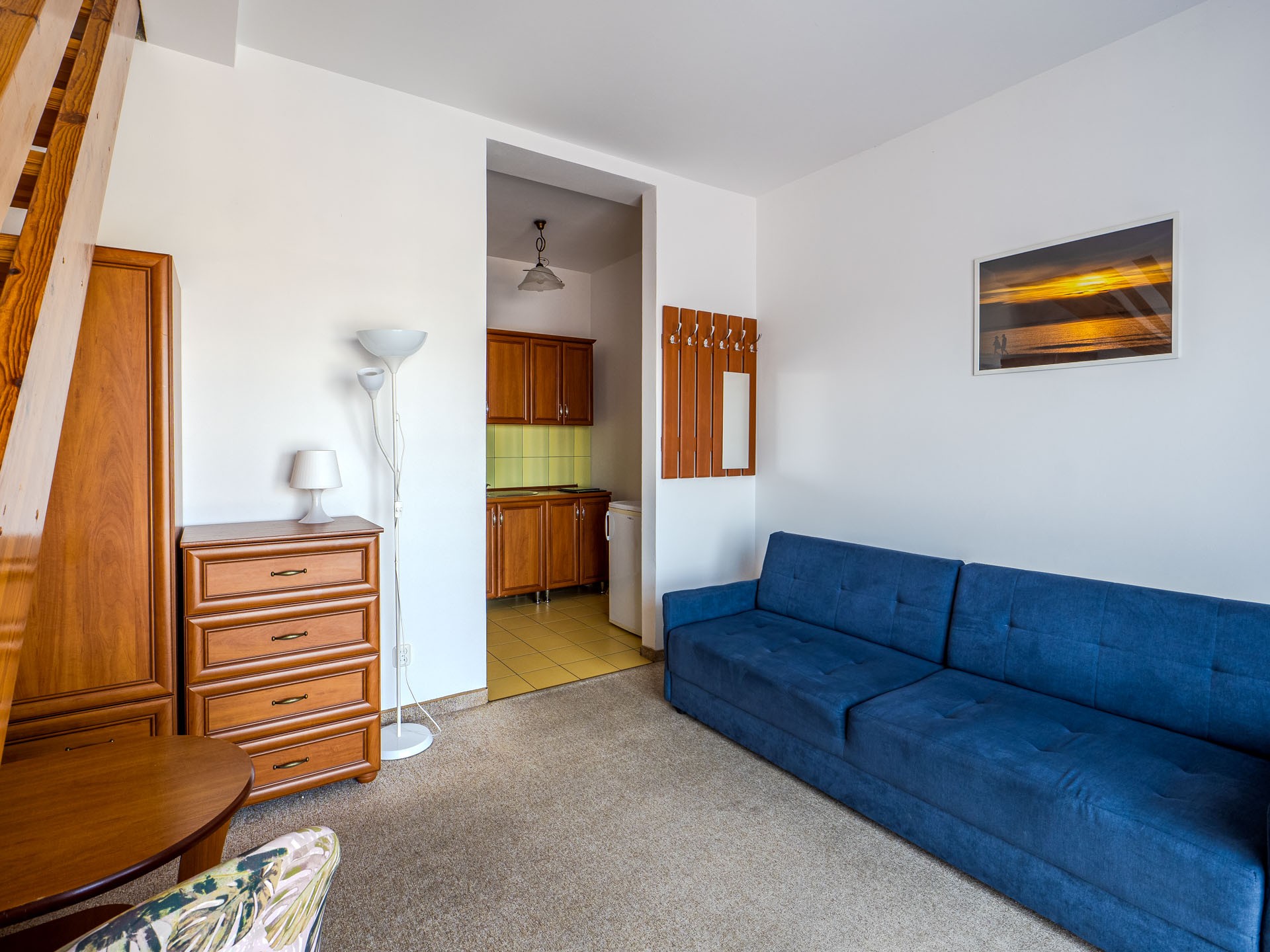 - aneks kuchenny: lodówka, płyta indukcyjna, czajnik bezprzewodowy, komplet zastawy i podstawowych naczyń,