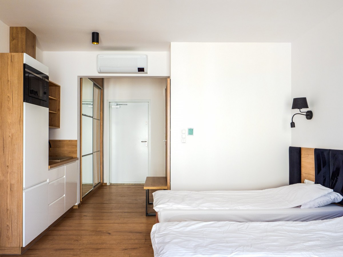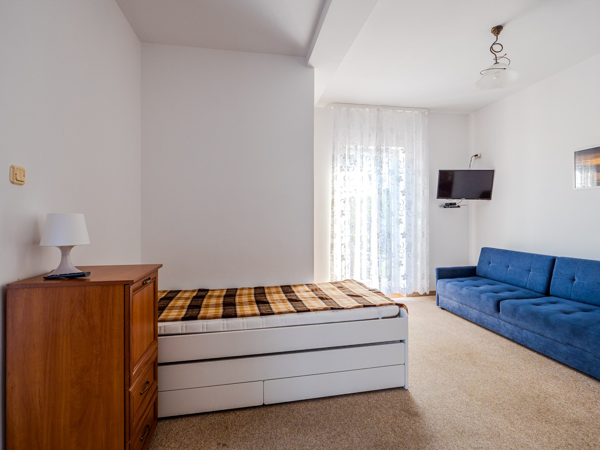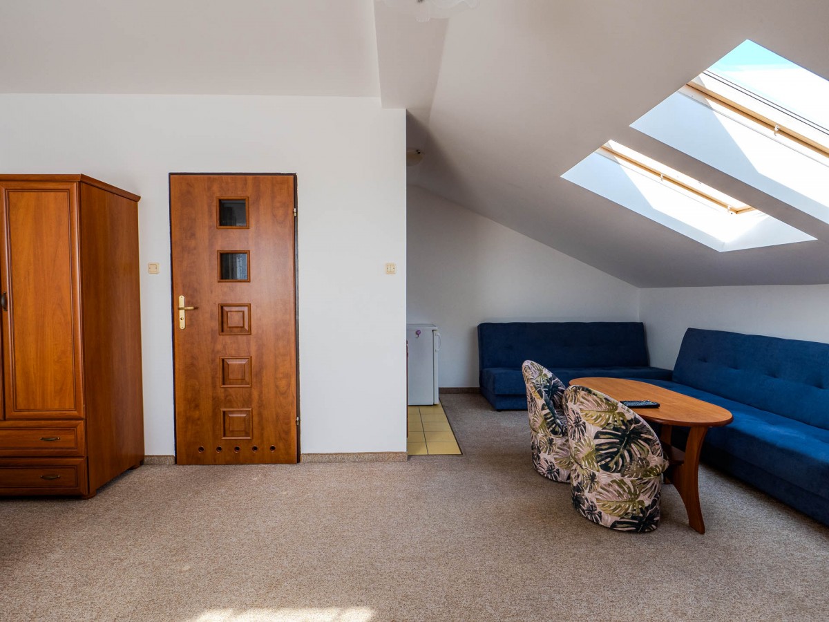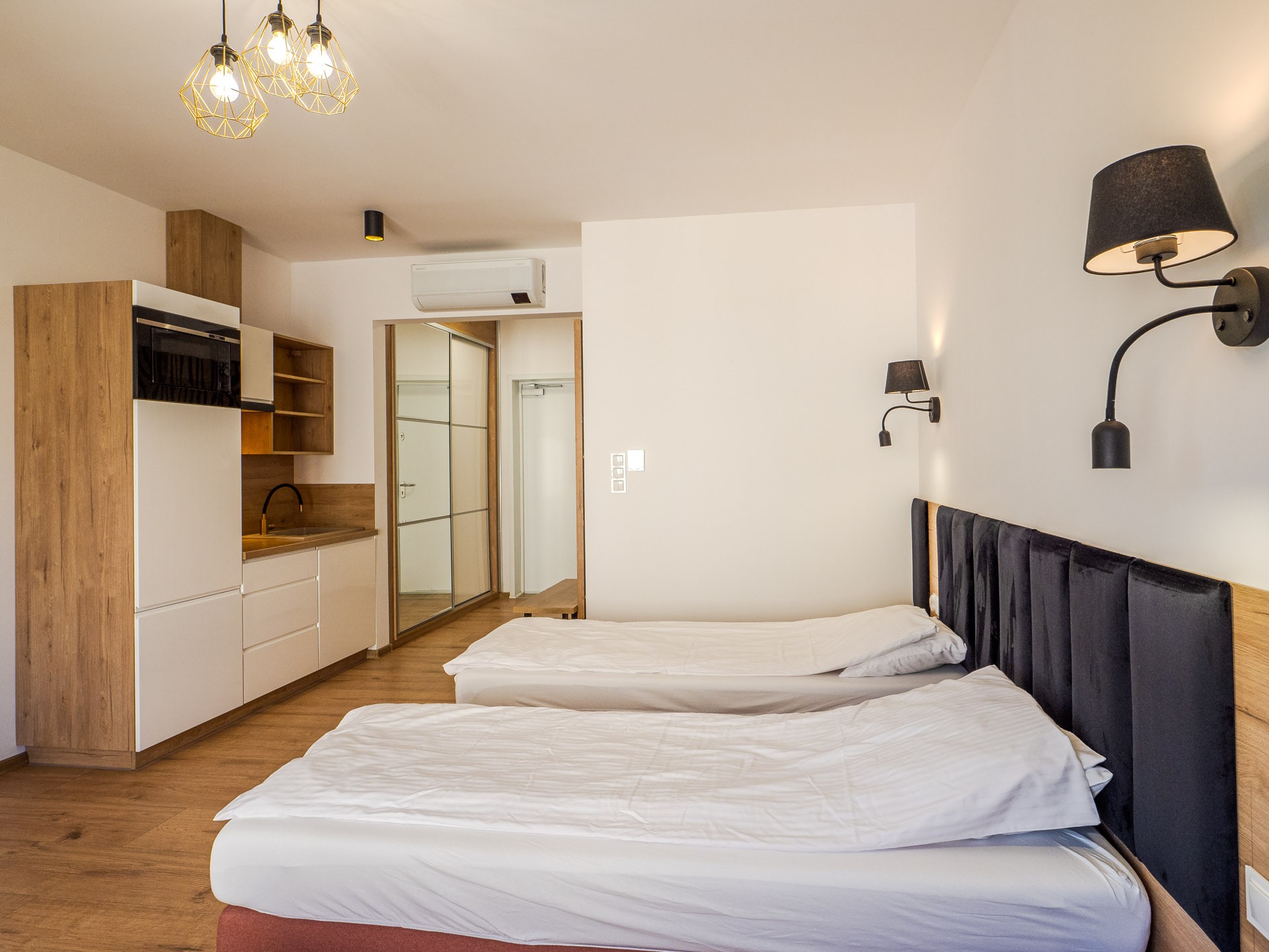 Zapraszamy do skorzystania z wygodnych i funkcjonalnych pokoi, przygotowanych z myślą o różnych potrzebach naszych gości. Oferujemy pokoje dla 2, 3, 4 i 5 osób, a także większe opcje rodzinne. Wśród nich znajdują się dwupoziomowe studia dla pięciu osób oraz praktyczne pokoje dwupokojowe, idealne dla rodzin lub grup. Dostępne są również przestronne pokoje reprezentacyjne, mieszczące do 4 osób.