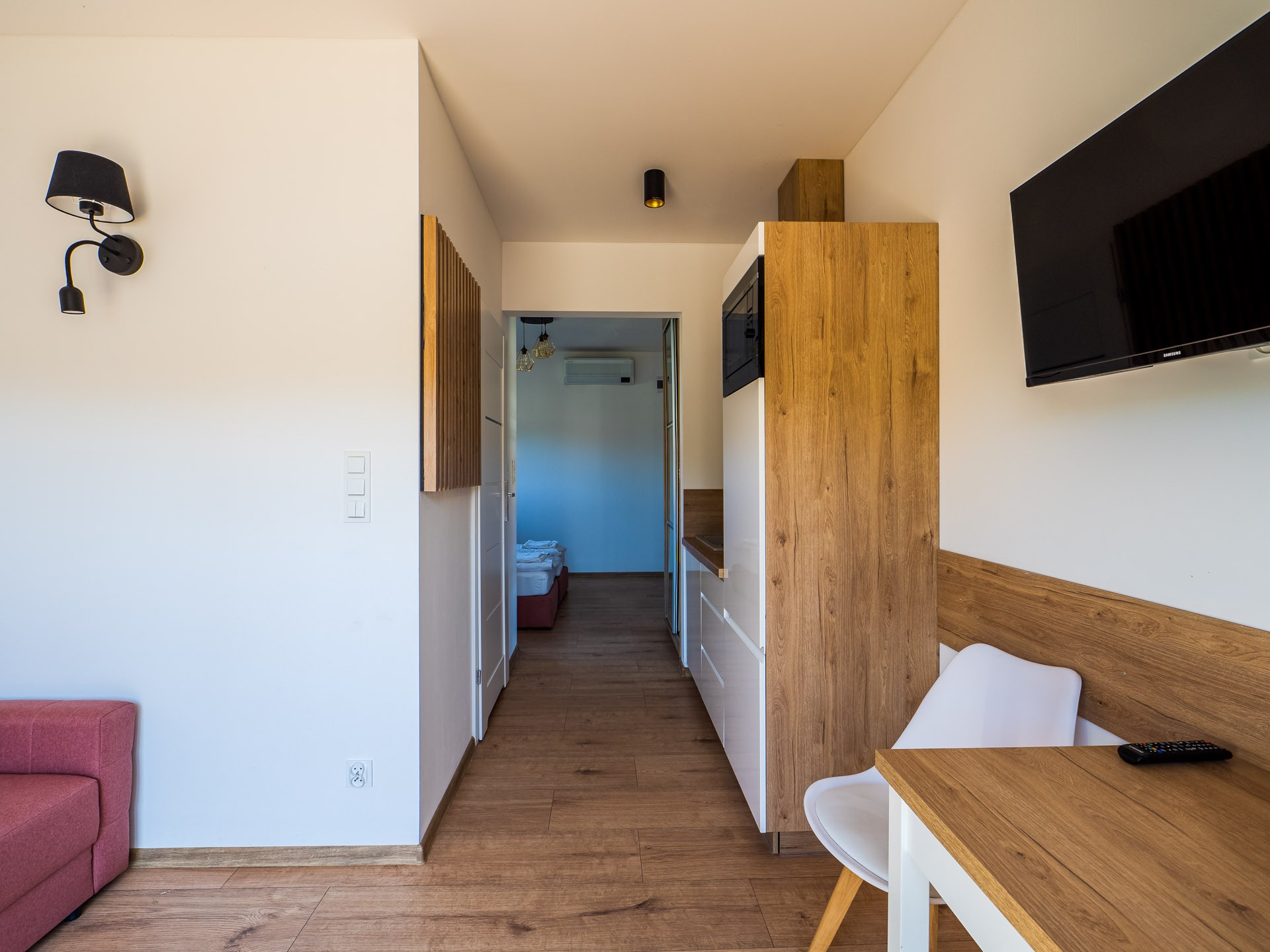 Każde pomieszczenie zostało wyposażone tak, aby zapewnić pełną niezależność podczas pobytu. Do dyspozycji gości:
